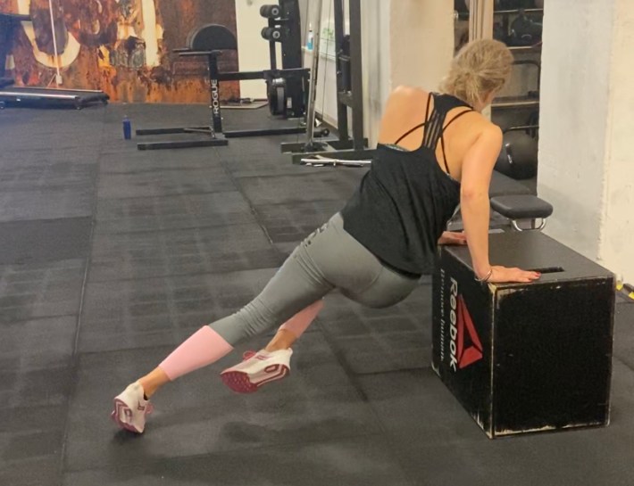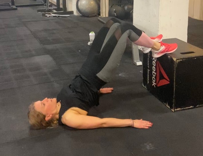 - Höftlyft mig bänk. Ligg på golvet/marken med en eller två fötter på stolen och lyft upp rumpa/höft.