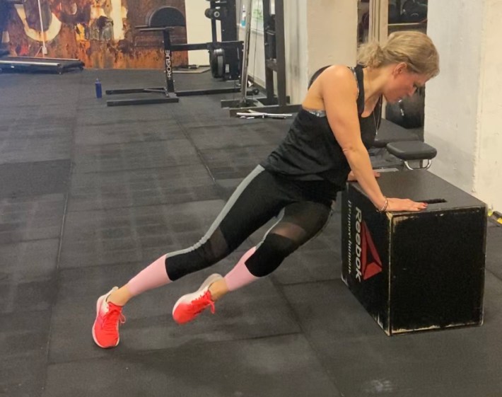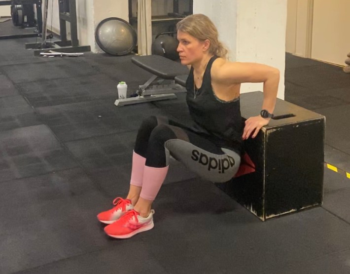 - Armhävningar mot bänk (fötter på bänk om man vill ha en tyngre övning).